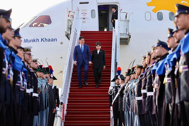 Монгол Улсын Ерөнхийлөгч Ухнаагийн Хүрэлсүх гэргий Лувсандоржийн Болорцэцэгийн хамт Бүгд Найрамдах Итали Улсын Ерөнхийлөгч Сэржо Маттарэллагийн урилгаар 2025 оны 12 дугаар сарын 01-03-ны өдрүүдэд тус улсад төрийн айлчлал хийхээр Ром хотод очлоо. “Фиучимино” олон улсын нисэх онгоцны буудалд тус улсын Парламентын Төлөөлөгчдийн танхимын гишүүн, Итали-Монголын парламентын найрамдлын бүлгийн дарга Никола Карэ, Гадаад хэрэг, олон улсын хамтын ажиллагааны яамны Дипломат ёслолын газрын захирал Бруно Паскуино, Монгол Улсад суугаа Онц бөгөөд Бүрэн эрхт Элчин сайд Жованна Пиккаррэта, Гэгээн Ширээт Улсын Төрийн нарийн бичгийн дарга нарын газрын Ёслолын хэлтсийн дэд дарга Бруно Бастос Линс, Монголын талаас тус улсад суугаа Онц бөгөөд Бүрэн эрхт Элчин сайд Ц.Нарантунгалаг, Гэгээн Ширээт Улсад хавсран суугаа Онц бөгөөд Бүрэн Эрхт Элчин сайд Д.Гэрэлмаа нар угтан авлаа.
