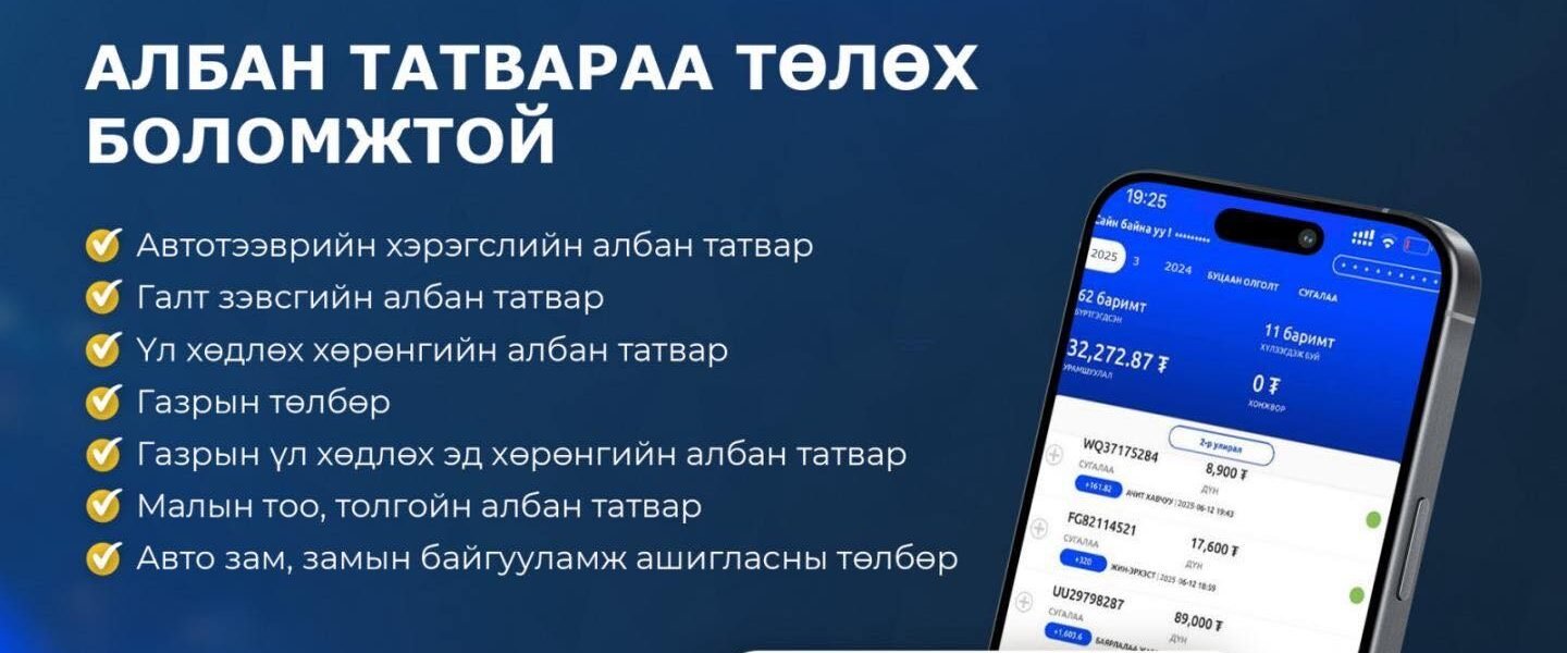 - Авто зам, замын байгууламж ашигласны төлбөрийг төлж болох бөгөөд төлөх бол 1-р сарын 22-26-ны дотор И-Баримт апп-даа нэвтрэн, хүсэлт гаргана. Таны хүсэлтийн дараа татварын байгууллага НӨАТ-ын буцаалтаас оногдсон татварыг суутган, зөрүүг шилжүүлэх юм.