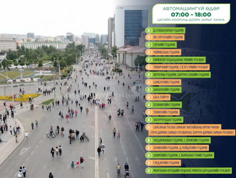 “Автомашингүй өдөр”-өөр дараах гудамж, замуудыг хаана. Тодруулбал,