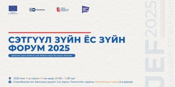 “Сэтгүүл зүйн ёс зүйн форум 2025” буюу JEF-2025 зургаа дахь удаагийн форум аравдугаар сарын 10-ны Баасан гарагт болох гэж байна. Хэвлэл мэдээллийн зөвлөл энэ удаагийн форумыг “Дижитал эрин үеийн ёс зүй: Хиймэл оюуны сорилт ба боломж” сэдвийн хүрээнд зохион байгуулж…