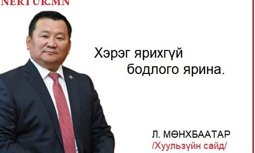 Монгол Улсын Хуульзүйн сайд аа, толгойлж буй яам чинь бодлогын хэрэгжилтийг зохион байгуулж, ажиллах чиг үүрэгтэй. Хэрэг ярих ёстой гэсэн үг. Яах вэ, чимээгүй сэмхэн, өндрөө авсан улс төрийн карьераа үргэлжлүүлж асуудлаас бултаж, сугараад, уснаас хуурай гарч болох л байх….
